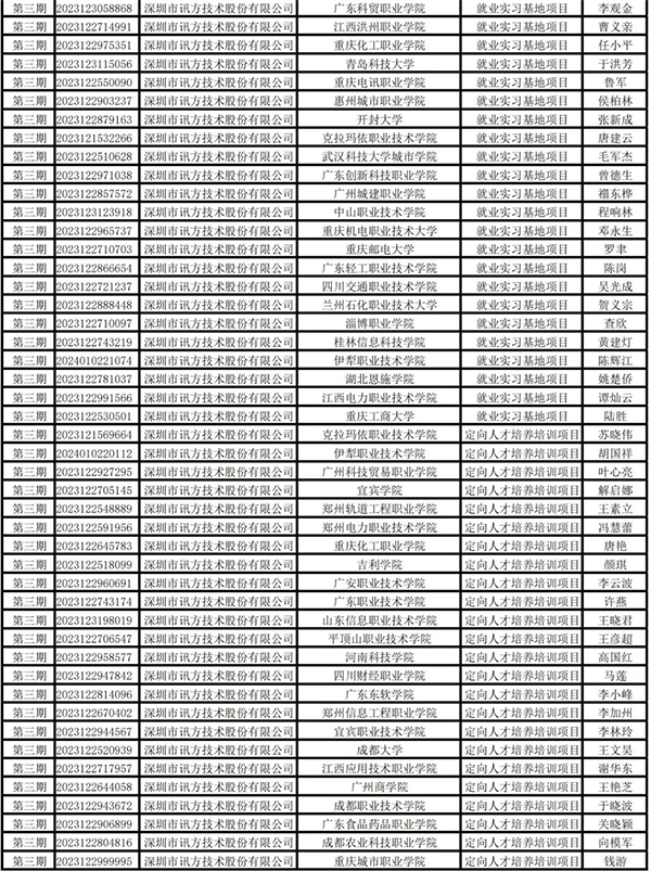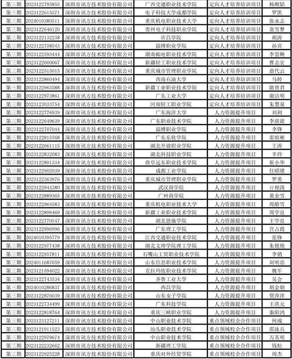 6月14日,教育部高校学生司公布第三期供需对接就业育人项目立项名单。深圳市bbin宝盈集团官网技术股份有限公司作为供需对接就业育人项目入选企业,与104所高校合作立项136项。其中定向人才培养项目37项,就业实习基地项目69项,人力资源提升项目25项,重点领域校企合作项目5项。